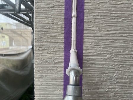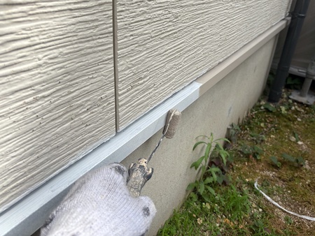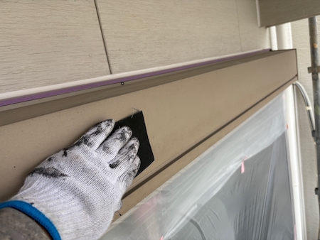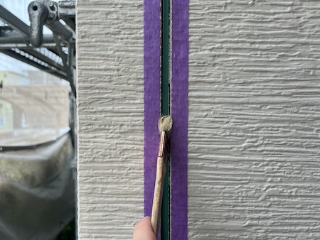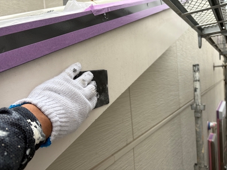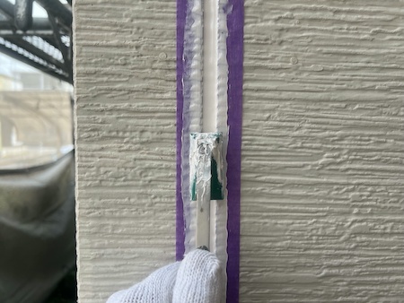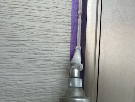 塗装で塞いでしまった塗膜を切って通気を確保し、雨漏りや結露防止のためにタスペーサーという縁切り部材を差し込みます。