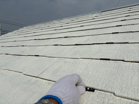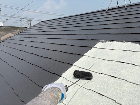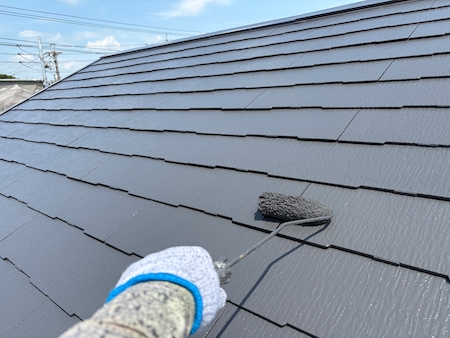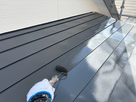 見た目を整えるだけではなく屋根としての機能性も高めるために、塗膜の厚みなど細かい部分まで気を配り、上塗りします。