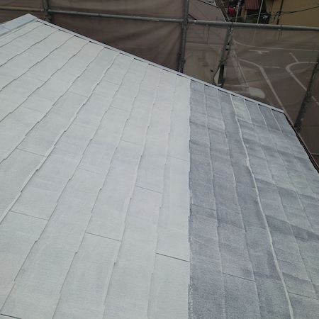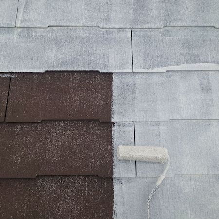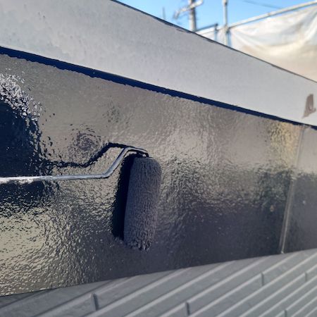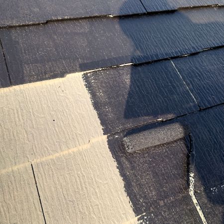 傷んでいる屋根は塗料を吸い込んでしまう性質があるため、今回は下塗り2回塗ります。状態により工程を増やし対応します。