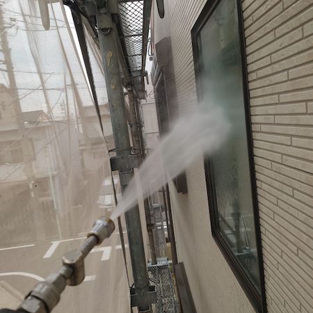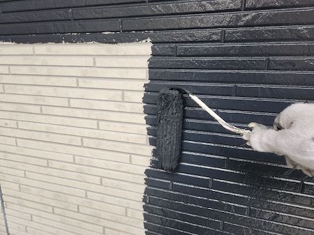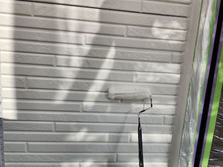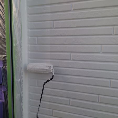 外壁の素材、下地の状態に合わせて選定した塗料で下塗りです。下地の状態によって最適な塗料と丁寧な技術で施工します。