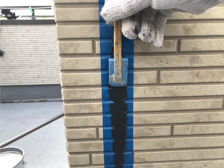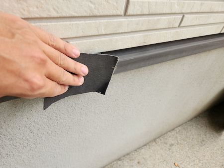ボンドブレーカーを新しく貼り直しました。目地底に貼ることで、シーリングが底面に接着するのを防いで長持ちさせます。