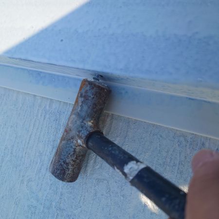板金を固定している釘の浮きを打ち直します。その後シーリングを充填しフタすることで抜けの防止や雨水の侵入を防ぎます。