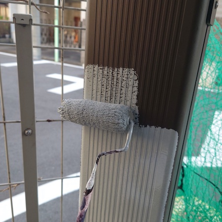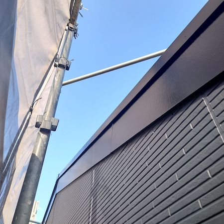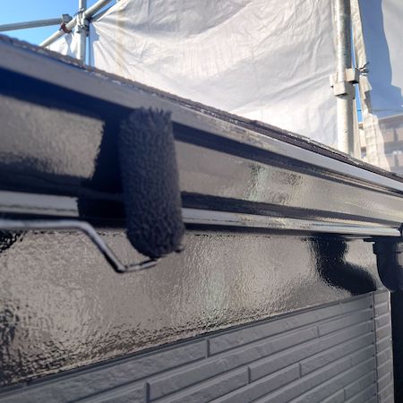 塗りムラないよう確認しながら上塗りです。丁寧に塗り重ねることで適切な厚みと耐久性に優れる塗膜が完成します。