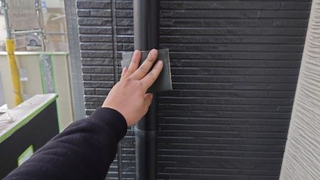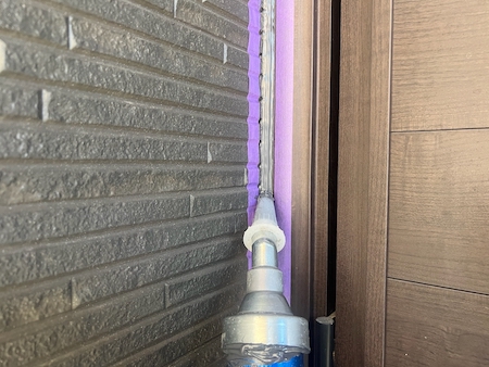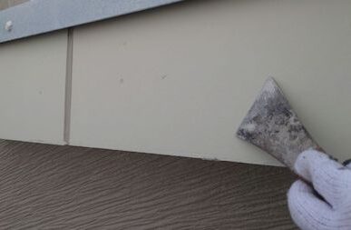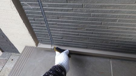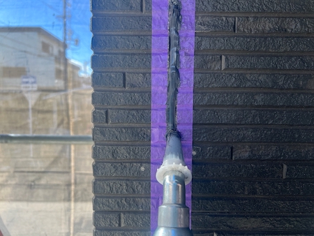 奥までシーリング材が入り、外壁とシーリング材が密着するようヘラでならします。
