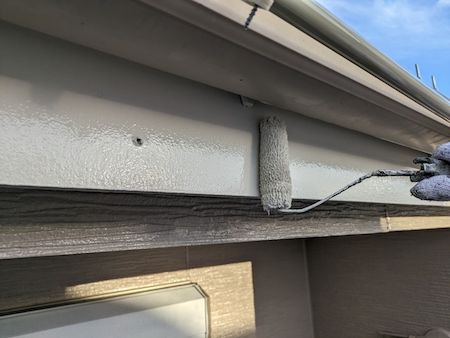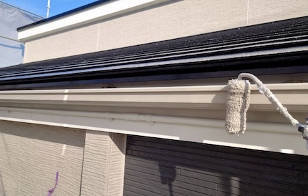 軒樋の塗装です。段差がある部分もカスレがないよう細部まできっちり塗装します。