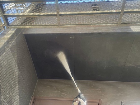 水圧により家の素材を傷めないように、洗浄する部分の材質や状態によって水圧を調節しながら、軒天もきれいに洗浄します。