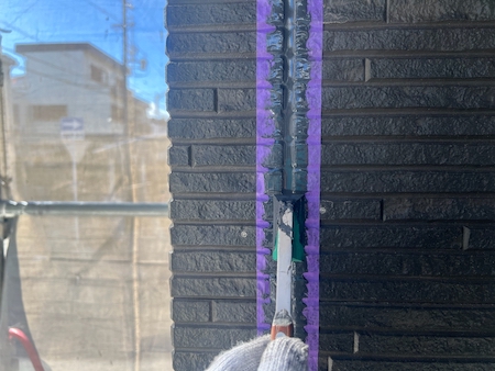 古いシーリングが残らないようにキレイに撤去して、目地底が見えている状態です。新しいシーリングに打ち替えていきます。