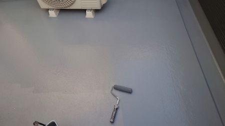ベランダの防水層に劣化が見受けられない状態です。プライマーを下塗りします。