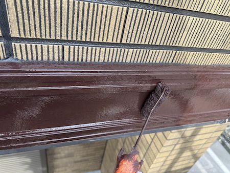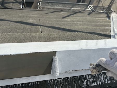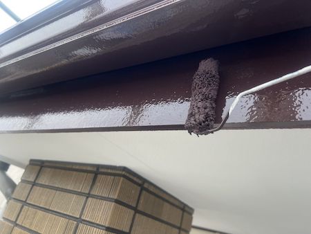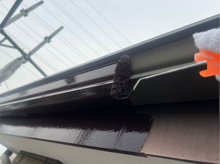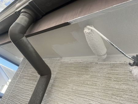 軒樋の裏側にある鼻隠しの塗装です。軒樋も鼻隠しも同時に作業を進めていきます。