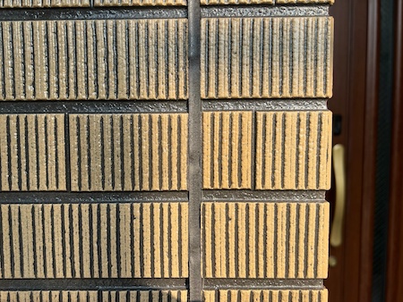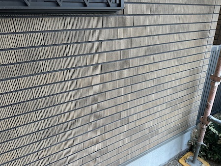 タイル調サイディングの現状です。クリヤー塗装によって風合いを損なうことなくお気に入りの外壁の美しさを維持させます。