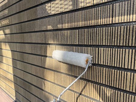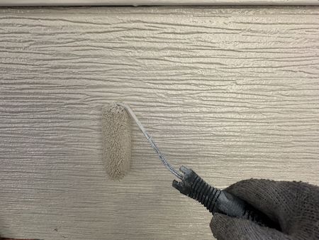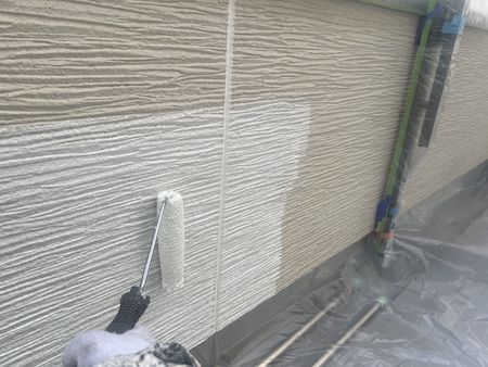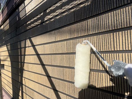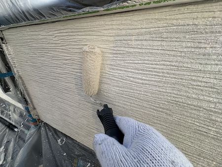 外壁の素材、下地の状態に合わせて選定した塗料で下塗りです。下地の状態によって最適な塗料と丁寧な技術で施工します。