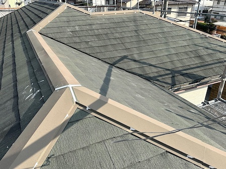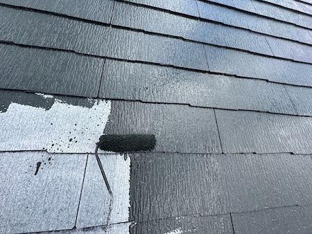 塗膜の厚みなど細かい部分まで気を配り、上塗りして完了です。色あせた屋根が見違えるほど美しい仕上がりとなりました。