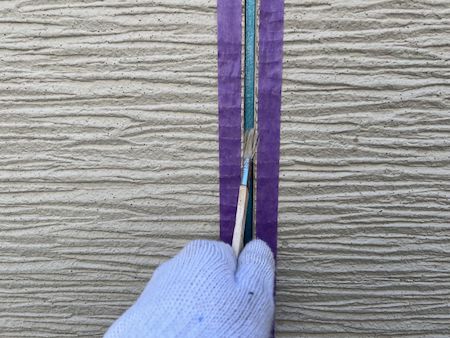 シーリングを撤去したら、プライマーを塗布します。この工程が不十分だと密着不良を起こすので、丁寧に塗っていきます。