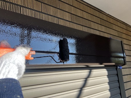 シャッターボックスに上塗りすると、色ツヤがよみがえり輝きが違ってきましたね。