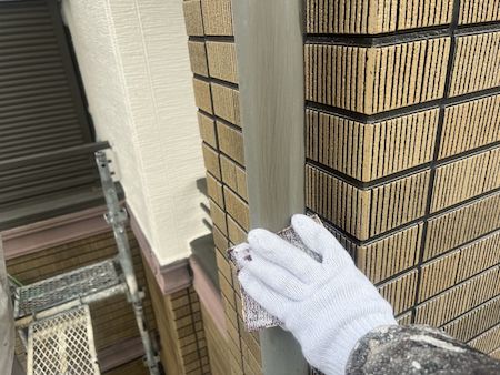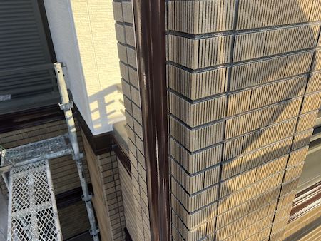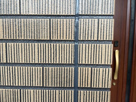 タイル調の外壁は、クリヤー塗装後に後打ちする順番で施工しました。シーリングの色は外壁と調和する色を使用しています。