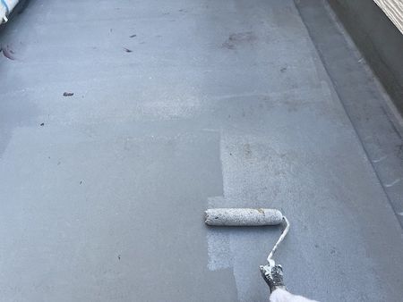 ベランダ床の防水層には劣化が見受けられない状態です。プライマー下塗りします。