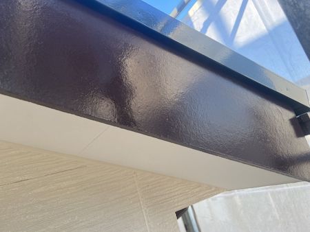 破風板も塗装によって、洗練された雰囲気に一新しました。軒天のホワイトとのコントラストが美しいですね!
