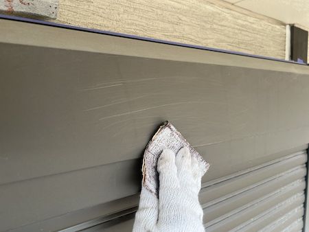 古い塗膜を削り落とし、塗料が密着しやすくなるように細かい傷をつける作業です。