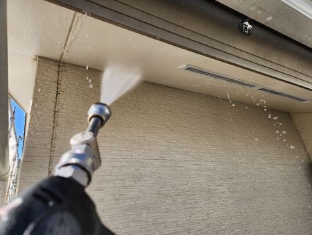 外壁塗装の効果を長持ちさせるためには、塗装前の高圧洗浄が重要です。表面の汚れを落とし洗浄後はしっかり乾燥させます。
