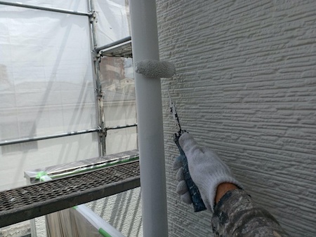 下塗りは外壁材に中塗り・上塗りの吸い込むことを防ぎ塗料を定着させ、表面劣化保護・強化する役割もある大事な工程です。