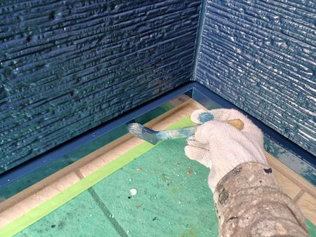 塗り残しやムラがないか注意しながら上塗り仕上げです。適正値以上の塗膜の厚さを確保して長持ちする施工を心がけます。