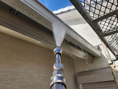 水圧により家の素材を傷めないように、洗浄する部分の材質や状態によって水圧を調節しながら、軒裏もきれいに洗浄します。