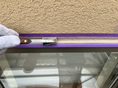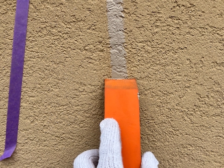 ひび割れ箇所をすべて下地調整し、再発を防ぎます。このあと塗装すると、補修跡は目立ちにくくなります。