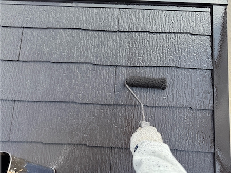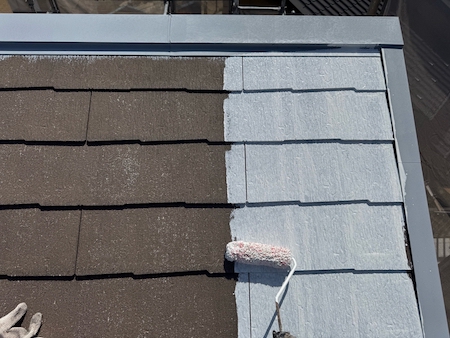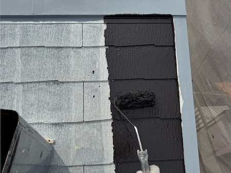 見た目を整えるだけではなく屋根としての機能性も高めるために、塗膜の厚みなど細かい部分まで気を配り、上塗りします。