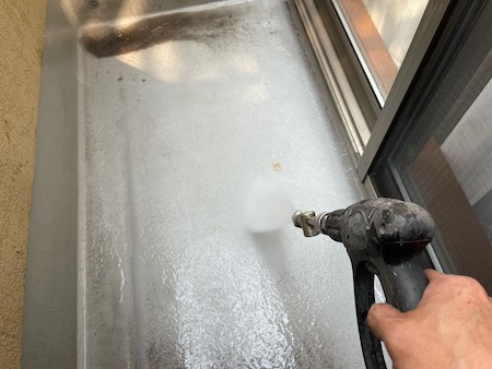 上から下へと洗い流し、徹底的に汚れを除去することで、塗料がしっかりと定着し、耐久性や仕上がりの品質が向上します。