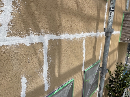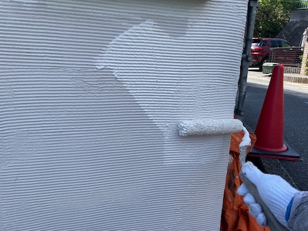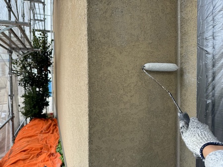下塗りは、外壁材が上塗り塗料を吸い込むのを防ぎ、塗料を定着させ、表面劣化保護・強化する役割もある大事な工程です。