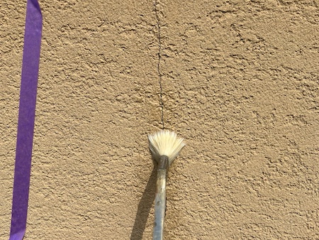 外壁に多数のひび割れが見られます。ひび部分にプライマーを塗布します。