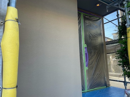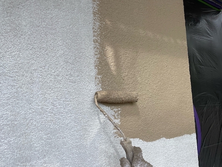 通常の塗料で塗りつぶしてしまうと外壁の質感が失われてしまいます。ジョリパットフレシュインフィニティを2回塗ります。