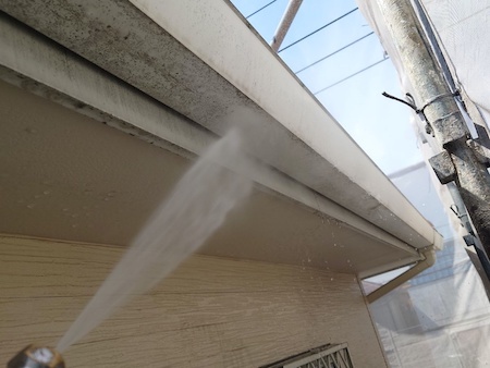 水圧により家の素材を傷めないように、洗浄する部分の材質や状態によって水圧を調節しながら、軒裏もきれいに洗浄します。
