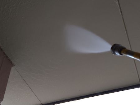 水圧により家の素材を傷めないように、洗浄する部分の材質や状態によって水圧を調節しながら、軒裏もきれいに洗浄します。