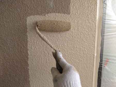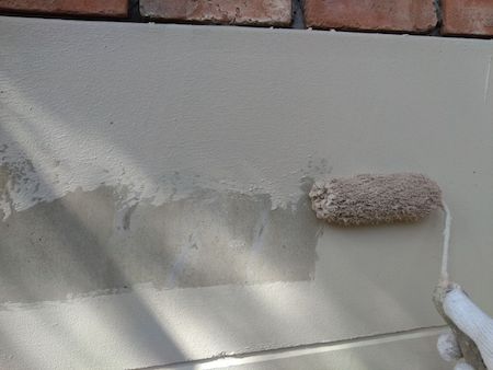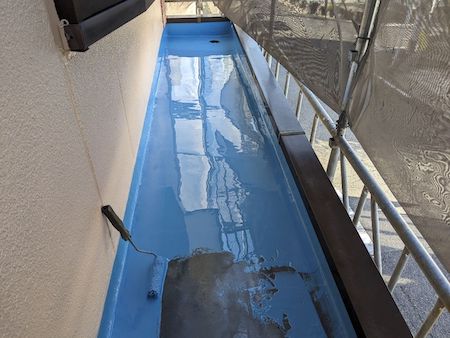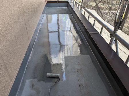 液体状のウレタン樹脂を塗り重ねて水を通さない防水層を形成します。密着をよくするためのプライマーを塗布していきます。