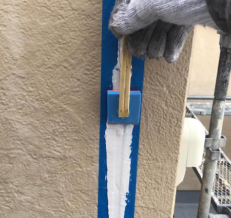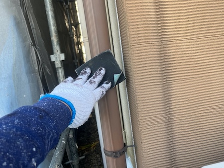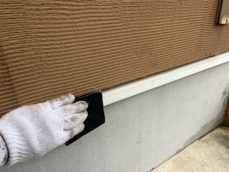 奥までシーリング材が入り、外壁とシーリング材が密着するようヘラでならします。