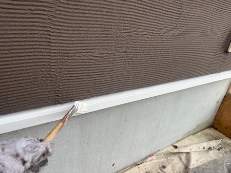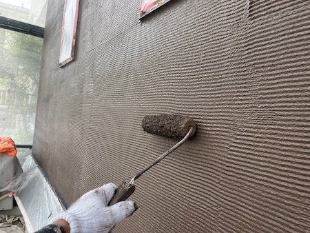 通常の塗料で塗りつぶしてしまうと外壁の質感が失われてしまいます。ジョリパットフレシュインフィニティを2回塗ります。