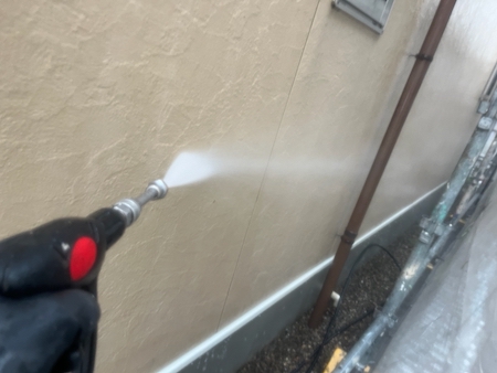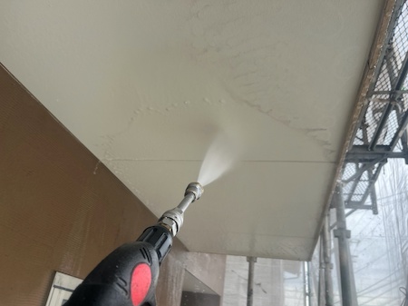 汚れをしっかりと取り除くことで、塗料の密着性が向上し、耐久性が高まります。時間をかけて洗浄作業を進めていきます。