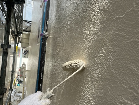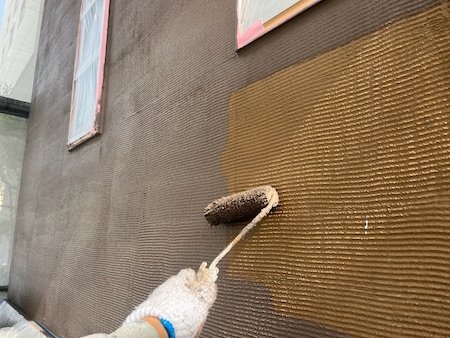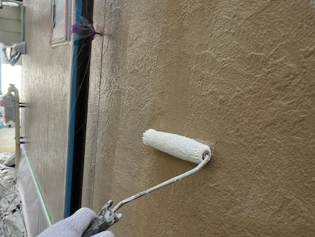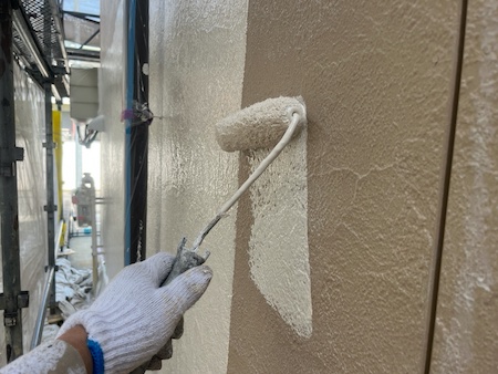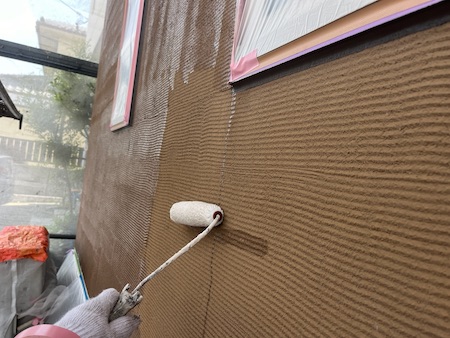 下塗りは、外壁材が上塗り塗料を吸い込むのを防ぎ、塗料を定着させ、表面劣化保護・強化する役割もある大事な工程です。