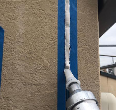 シーリングの色は、これから塗装する外壁の色に合わた近似色にて施工しています。