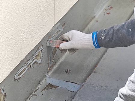 シーリングを充填して平滑にならし、劣化部分を補修していきます。