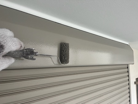 上塗りすると、シャッターボックスの色つやがよみがえり、輝きが違ってきました。