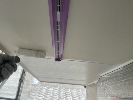 軒天は、湿気がこもりやすいため透湿性、防カビ性に優れた専用塗料を使用します。
