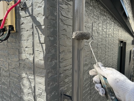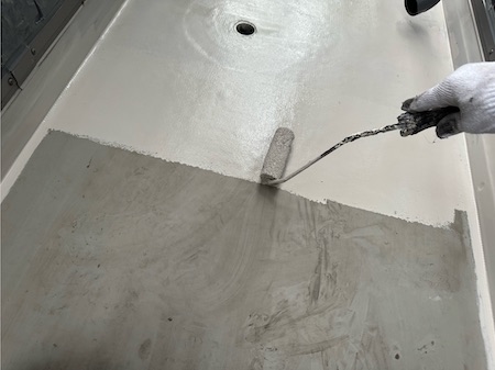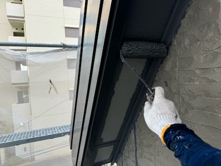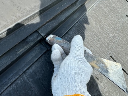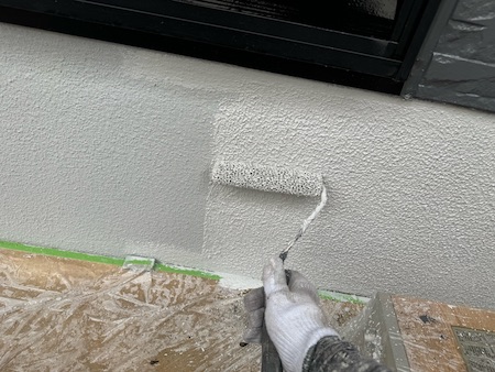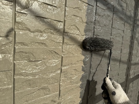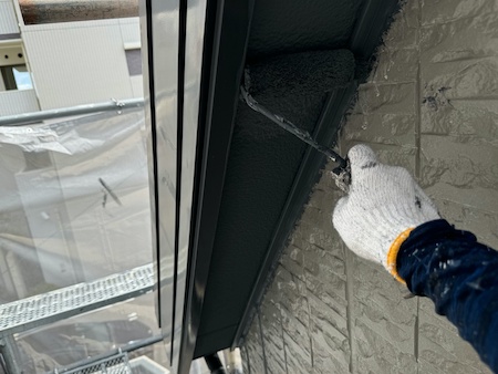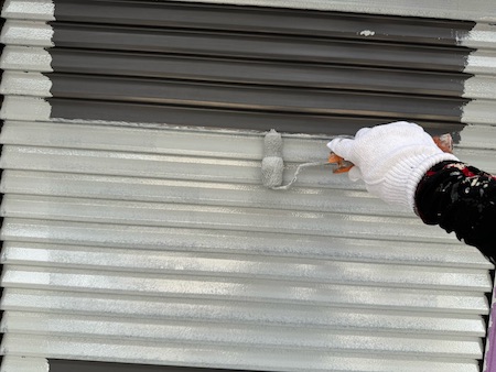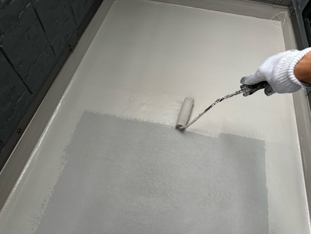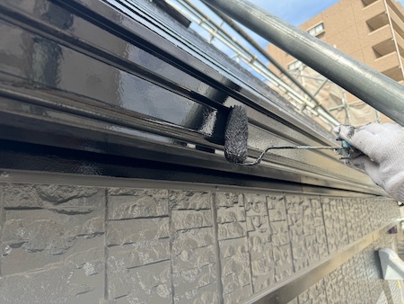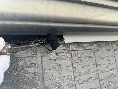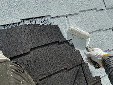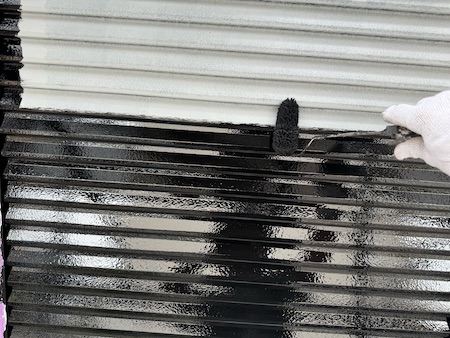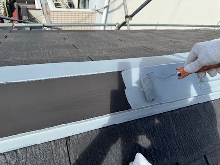 屋根材の下塗りです。下塗りを細部までしっかり塗布することで、仕上げ塗料の食いつき具合が変わってきます。