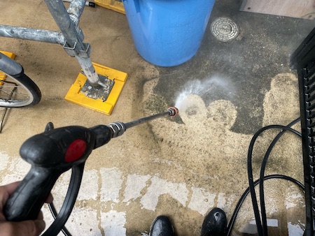 塗装の効果を長持ちさせるためには塗装前の高圧洗浄が重要です。時間をかけて汚れを落とし、洗浄後は十分乾燥させます。
