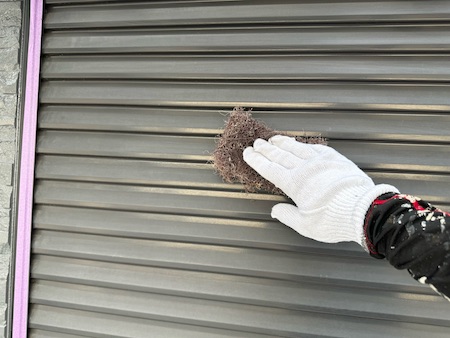 屋根板金の下地処理(ケレン)したら塗装に入ります。錆が発生することを予防し、密着性に優れた錆止めを下塗りします。
