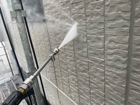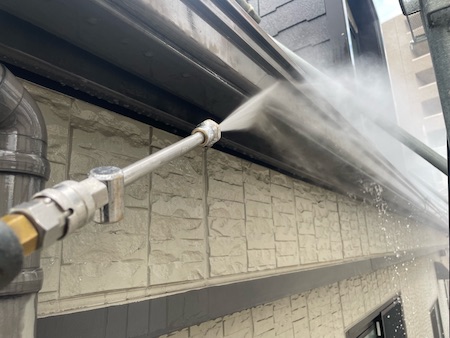 外壁の表面、凹み部分の汚れをきれいに洗い流してから塗装することで、塗料が安定して定着し持ちもよくなります。