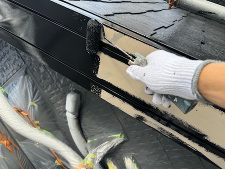 端や細かな部分を刷毛で先に塗り込んでから、ローラーで全体を塗っていきます。お色はブラックです。